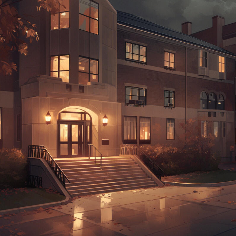 ELLIS HALL — Modern dorm with sleek archetecture and spacious suites. Students can expect a private bedroom and bathroom, with a communal living area. Favoured amongst upperclassmen and sporty people due to its proximity to the gym and recreational facilities.